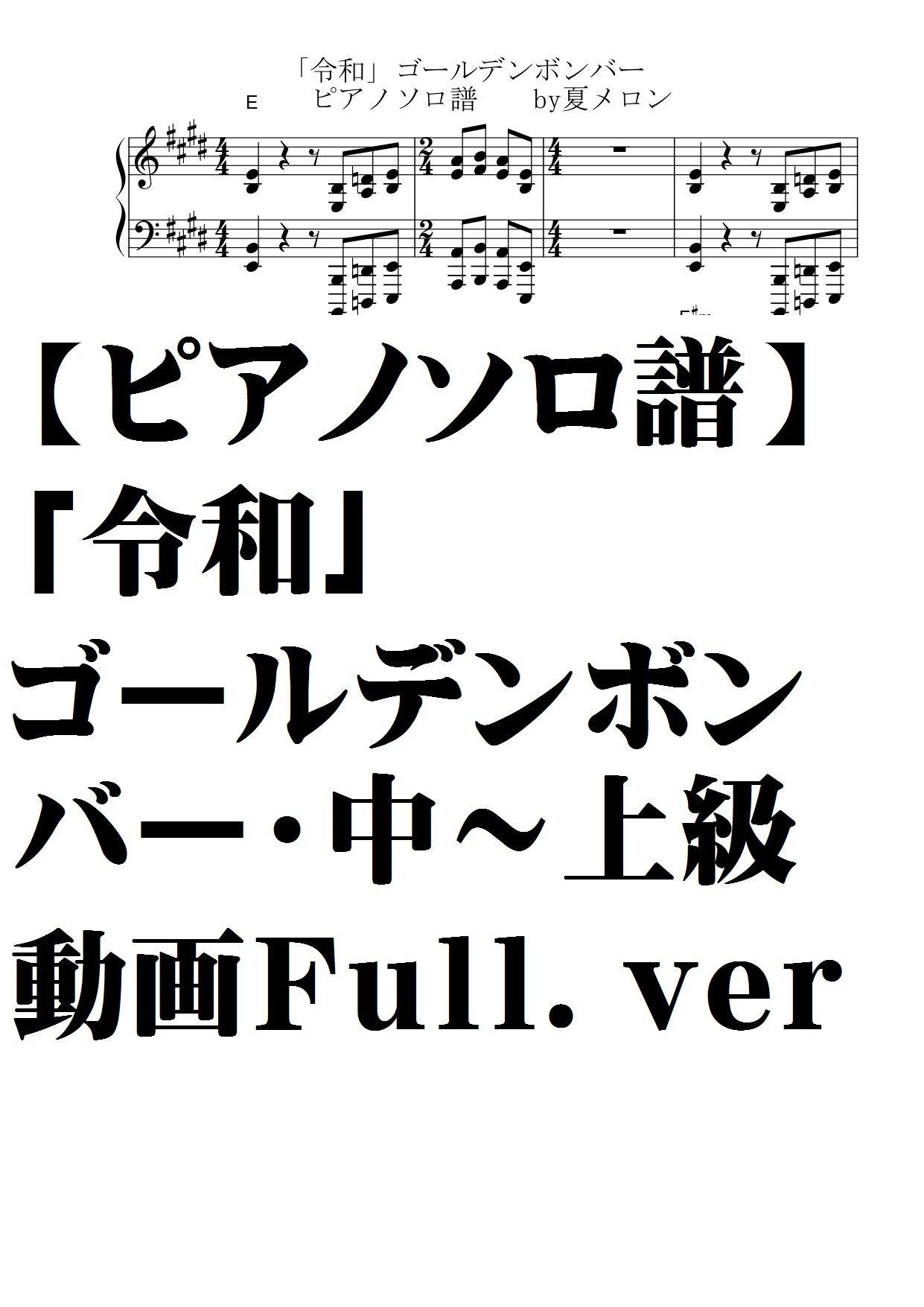 ゴールデンボンバーの動画「令和」full.verをピアノソロ譜に